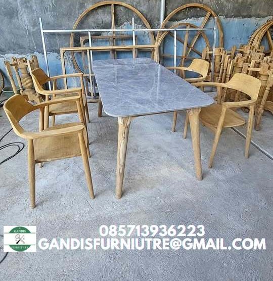 Nama BarangMeja Makan Marmer 6 kursi Minimalis Kayu Jati Jepara