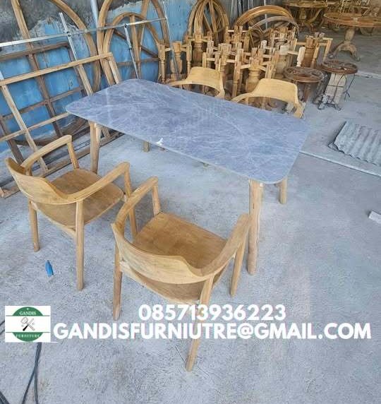 Proses Meja Makan 4 Kursi Marmer Putih Kursi Jati Marmer